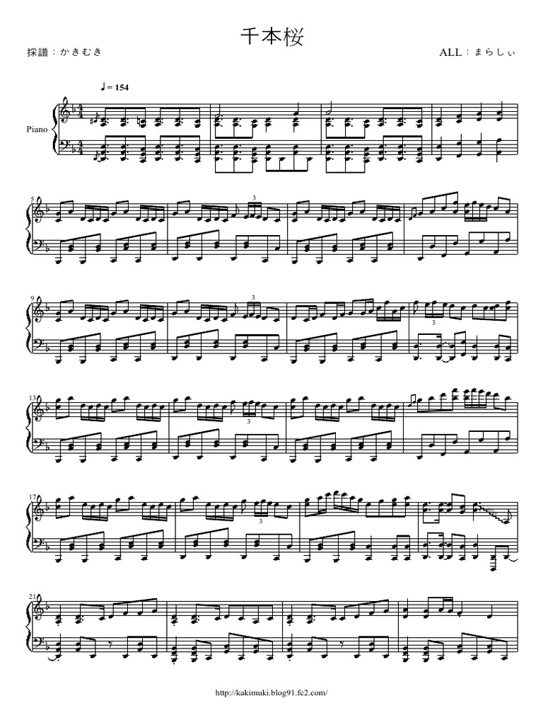 Senbonzakura Piano Sheet - Get free senbonzakura (piano) sheet music by samuelweng as a digital notation file for various instruments in f major (transposable). Browse our 8 arrangements of senbonzakura. sheet music is available for piano, guitar, piano accompaniment and 1 others with 5 scorings.